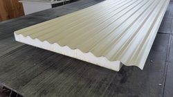 EPS泡沫100MM 厚,1000MM宽,密度20KG/M3,底层铁皮厚度0.6mm。外层波浪彩钢厚度0.42mm,约1150MM 宽,13波,波高17.9MM,波心65MM,波距76.90mm。总长11.8M,