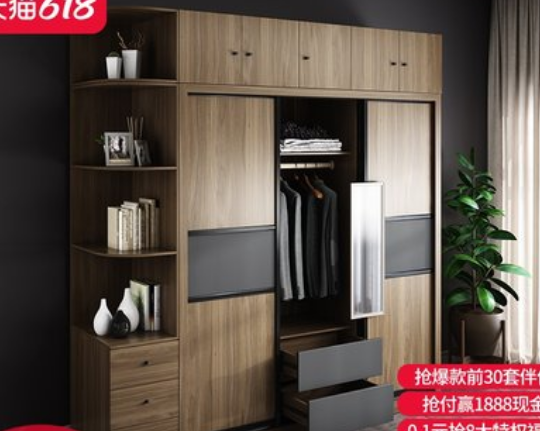 推拉门衣柜现代简约组装移门北欧大衣柜分层隔板家用卧室收纳衣橱