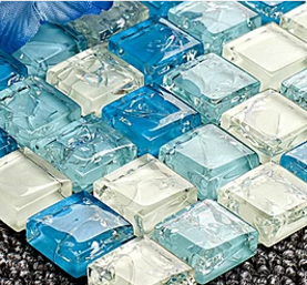 蓝色水晶玻璃冰裂马赛克瓷砖石材电视背景墙浴室卫生间墙贴拼图