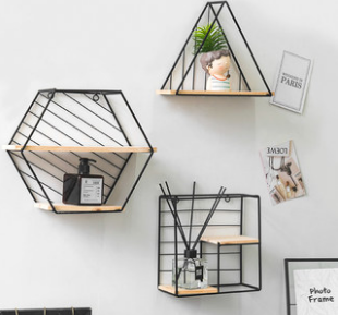 墙上装饰创意铁艺挂件屋内墙饰奶茶店软装置物架几何房间墙面挂饰